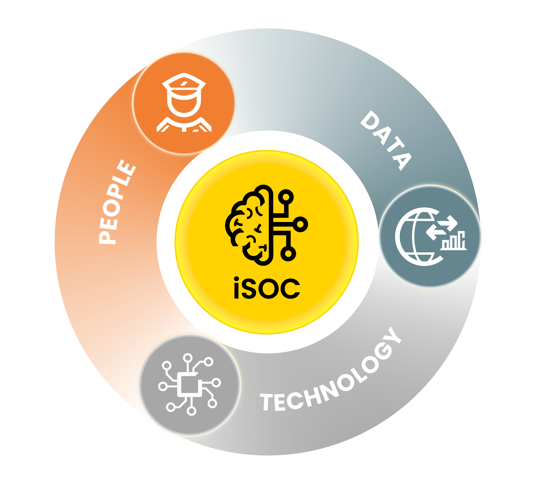 The iSOC is where the three elements of Hybrid Security converge; it is the brain that learns from all of this information, to connect people, technology and data. Our goal is to integrate all aspects of the security program, providing the customer with substantial value to their business.